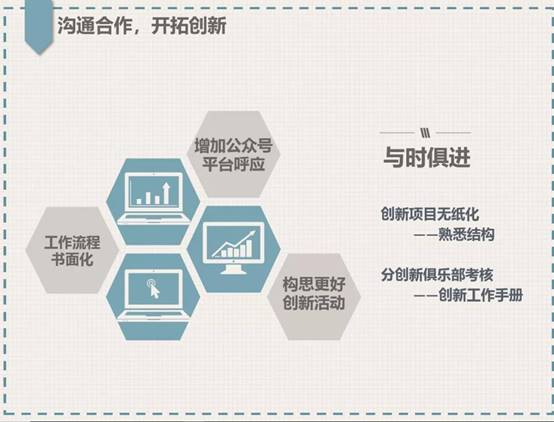 增强总俱和分俱、分俱和分俱公众号之间的呼应。各俱乐部之间齐心协力共同承办好每一次活动,并相互支持彼此公司的活动工作,让创俱大家庭凝结出更强大的力量。