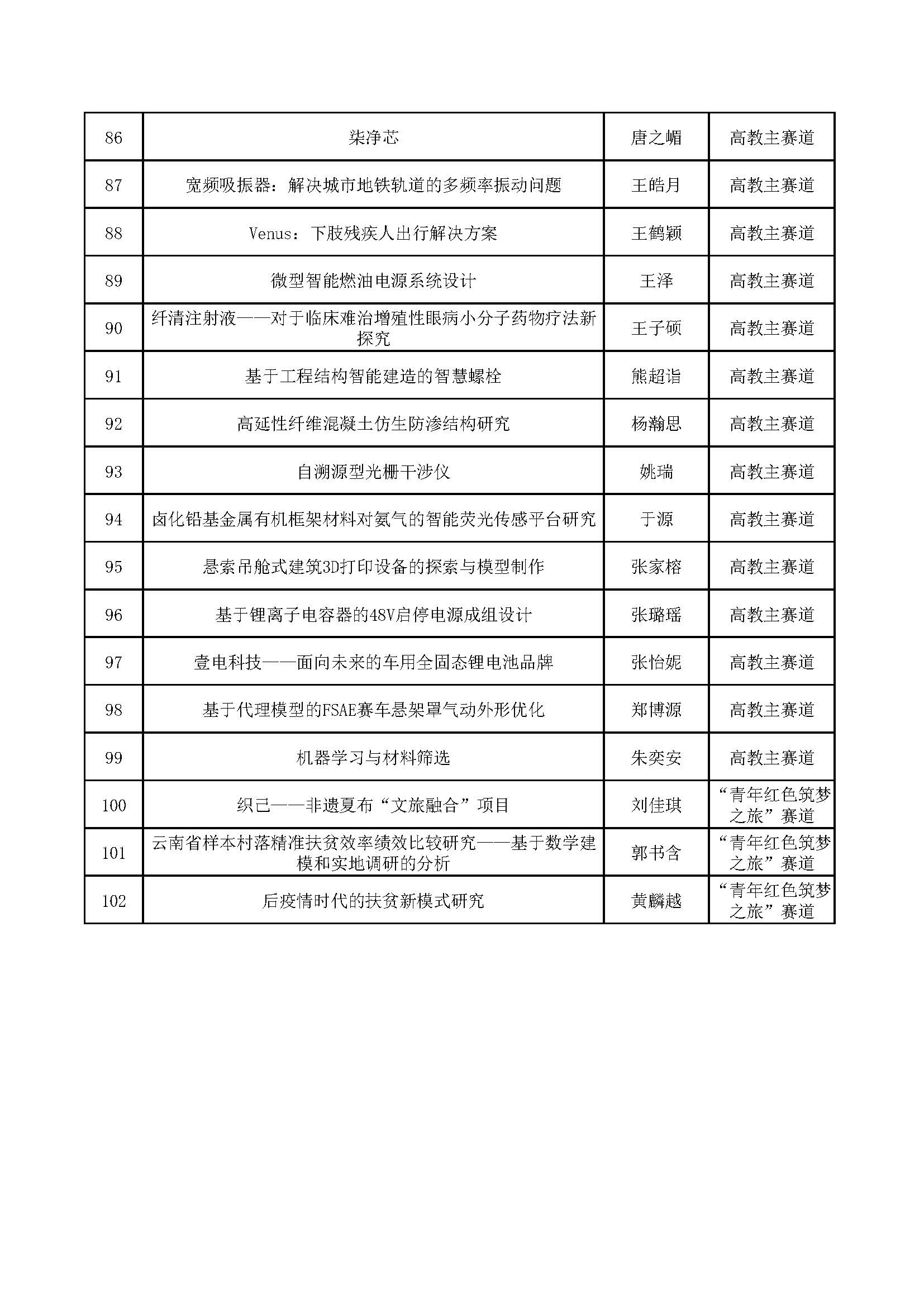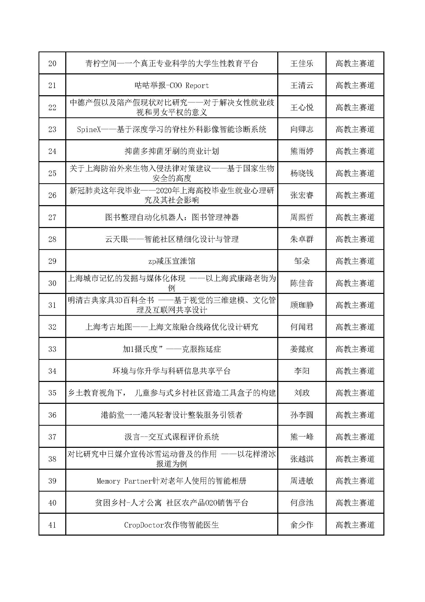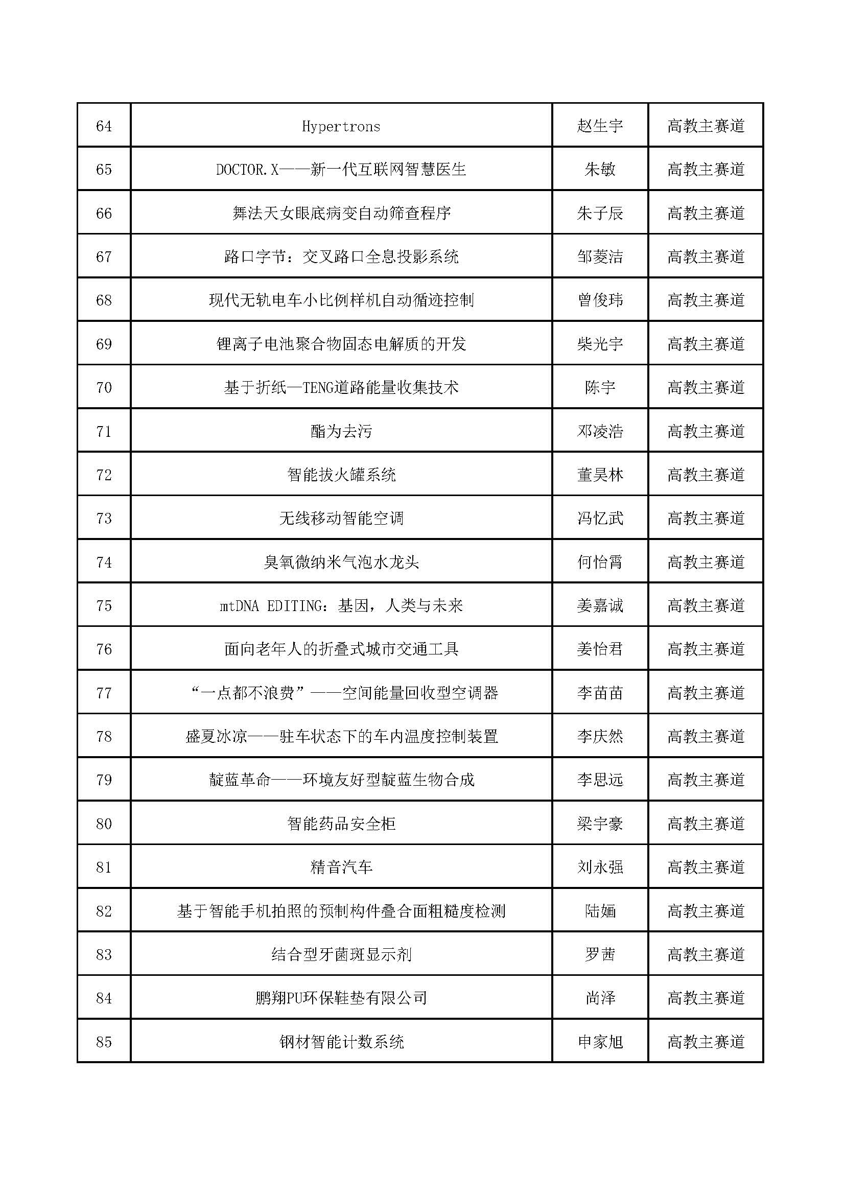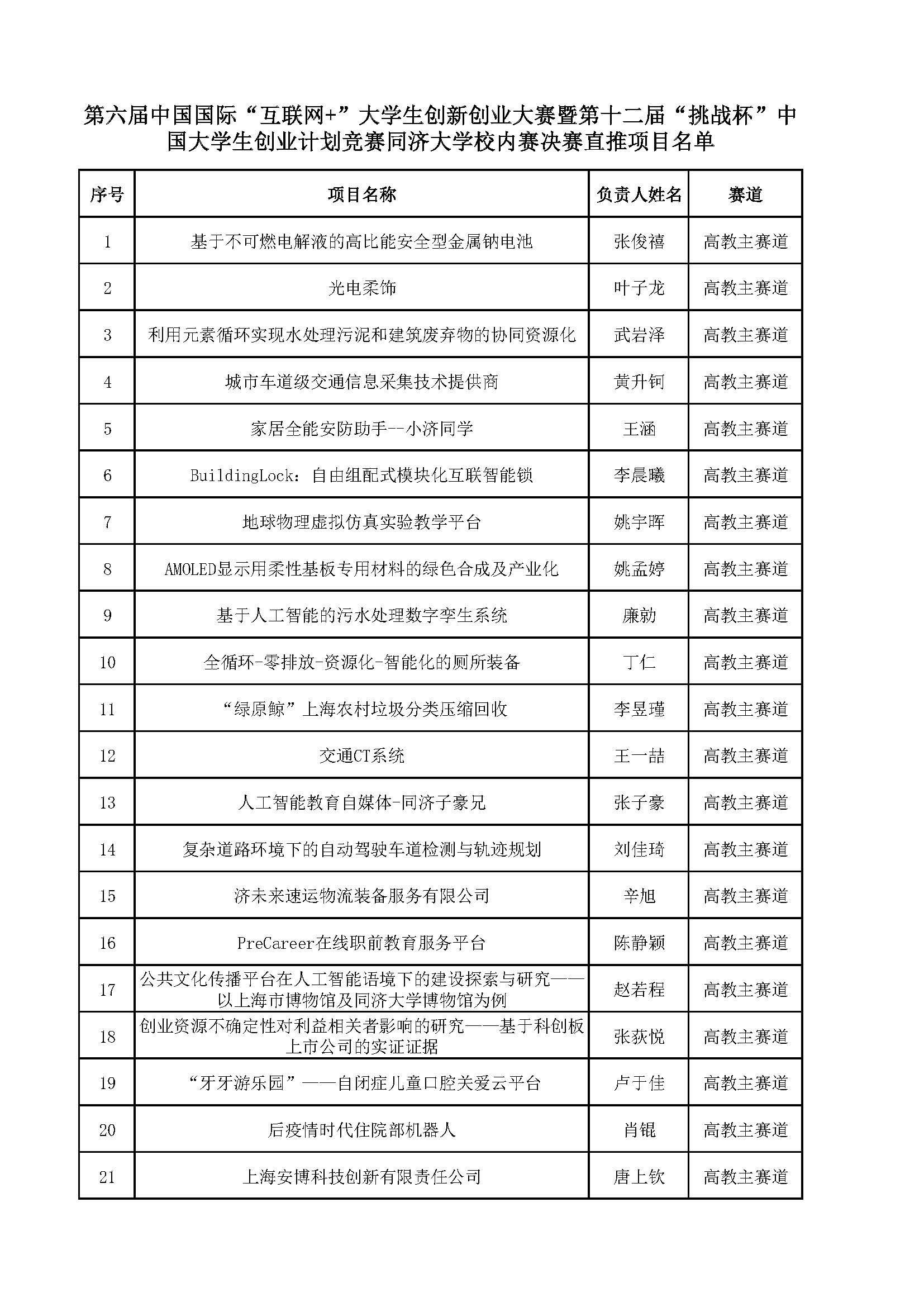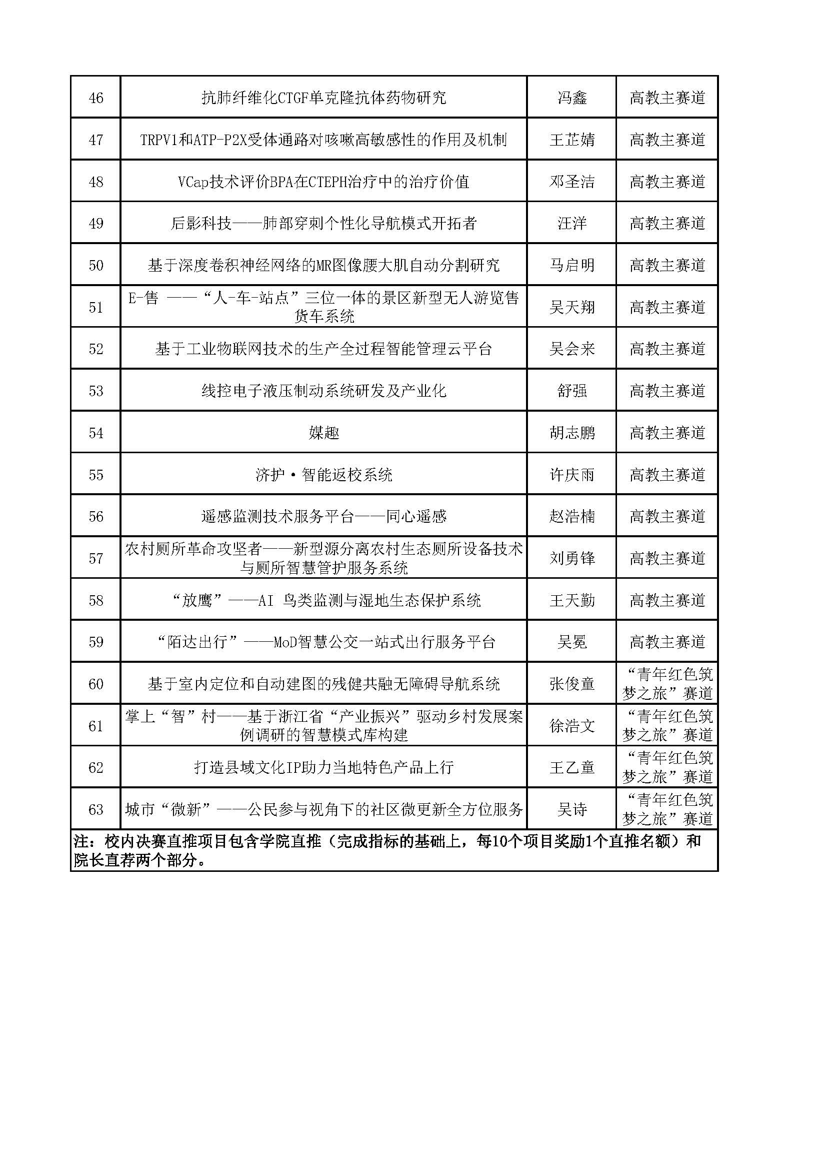 决赛直推项目名单