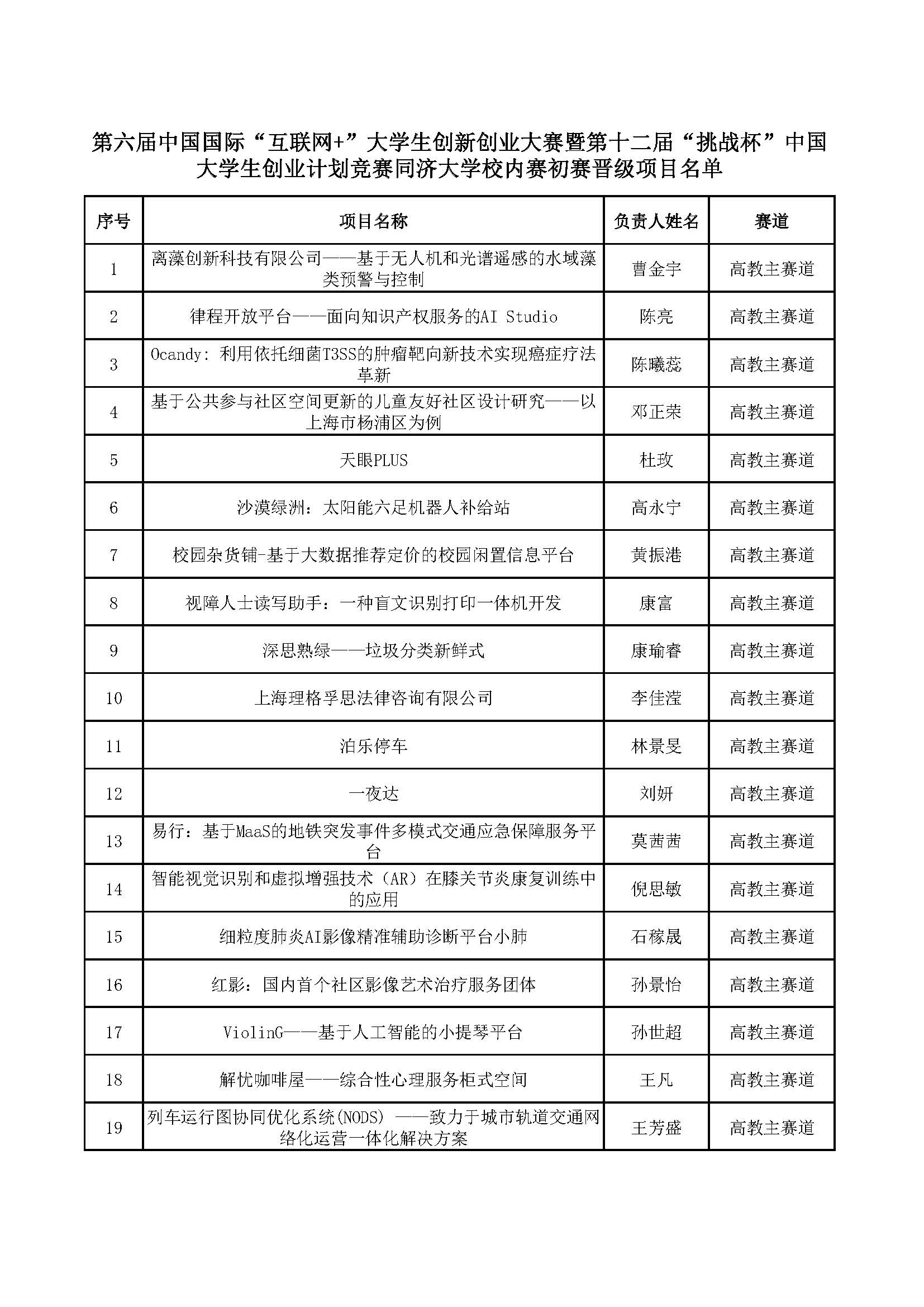 初赛晋级项目名单