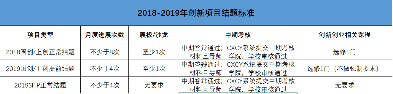 1.现开展2018年国创项目、上创项目结题验收工作(已结题的项目除外)、2019年国创项目、上创项目中期检查工作以及2019年第14期SITP项目结题验收工作。2018-2019各级创新项目结题验收工作暨中期检查工作在线上进行。