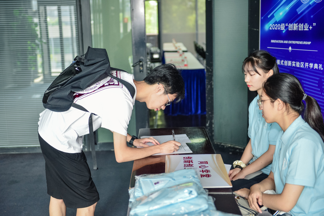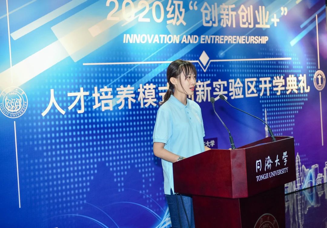 2020级“创新创业+”实验区员工代表杨雨荷和苏雨翔分享了报名实验区的初心和愿望,对创新创业的理解以及对未来两年实验区学习生活的期待与规划。